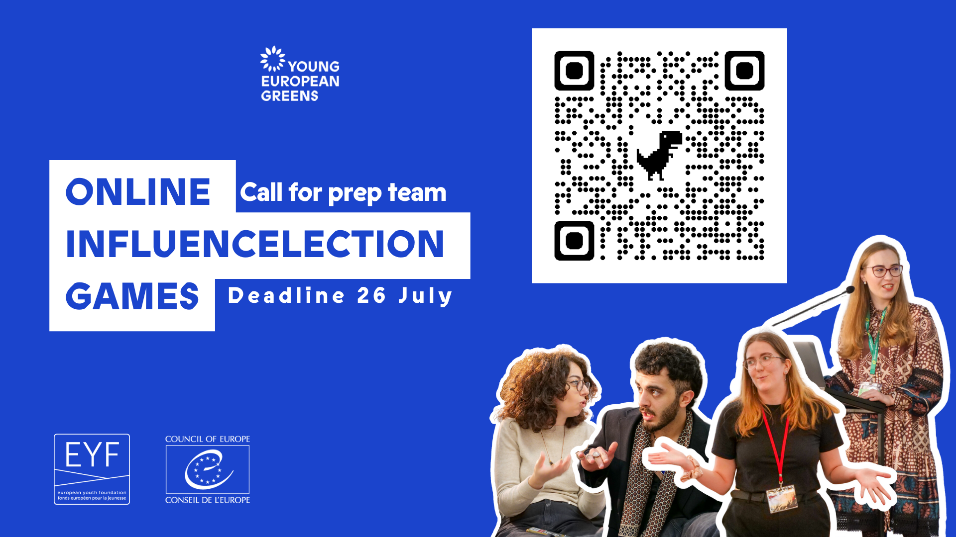 The Federation of Young European Greens is announcing an open call for members of the international Preparatory Team for the ‘Online Influencelection Games’ for the 2024 European elections, an international activity consisting of 4 trainings that will take place from September to November 2023, online.