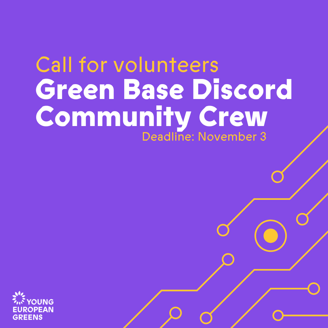 The Young European Greens are looking for volunteers to join the Green Base Community Crew! As part of the team, you’ll be responsible for onboarding new members and boosting engagement within our Discord community, working closely with the FYEG Community Officer and an Executive Committee member.